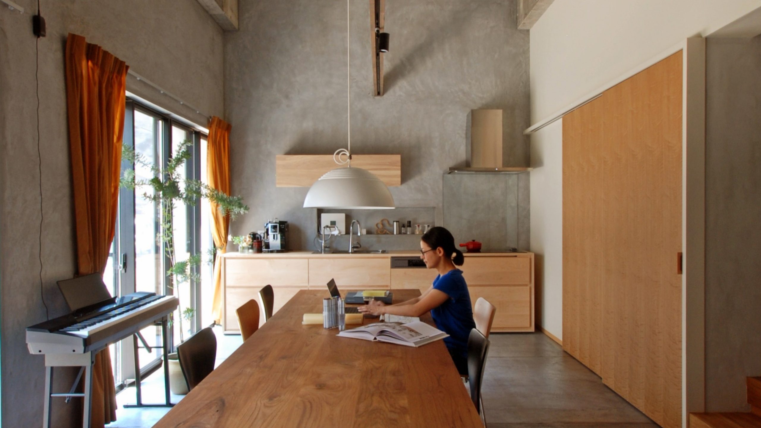 現在、わたしたちは両親が住んでいた築45年の住宅を改修して暮らしています。この改修では、人が自然と集まること、食事の時間を大切にすること、そして静かに過ごせる時間があること。そうした日々のあり方を考えながら計画しました。